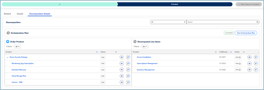 Every time when a successful order is created for the Home Security Package product, the system automatically initiates the Orchestration process.